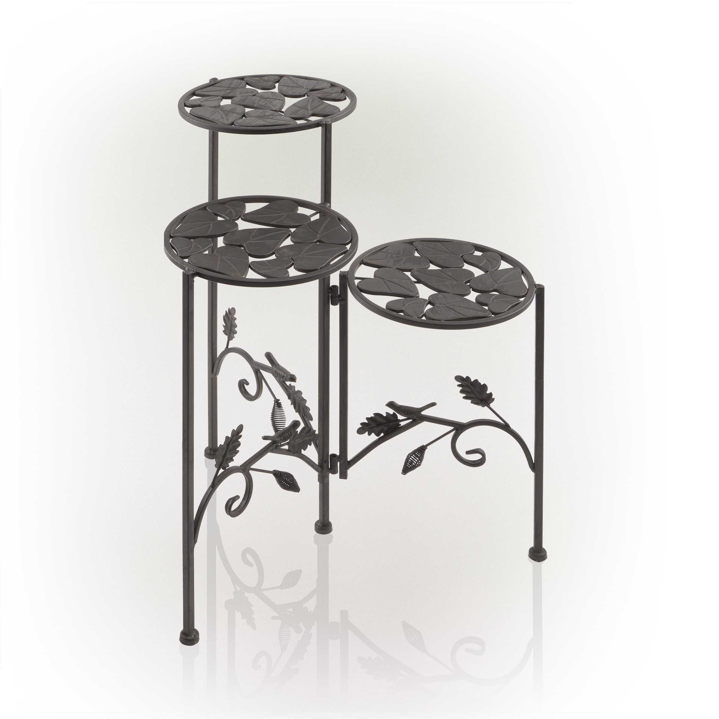Alpine Corporation Metal 3 Tier Bird And Leaf Plant Stand 23 Inch Tall Walmart Com